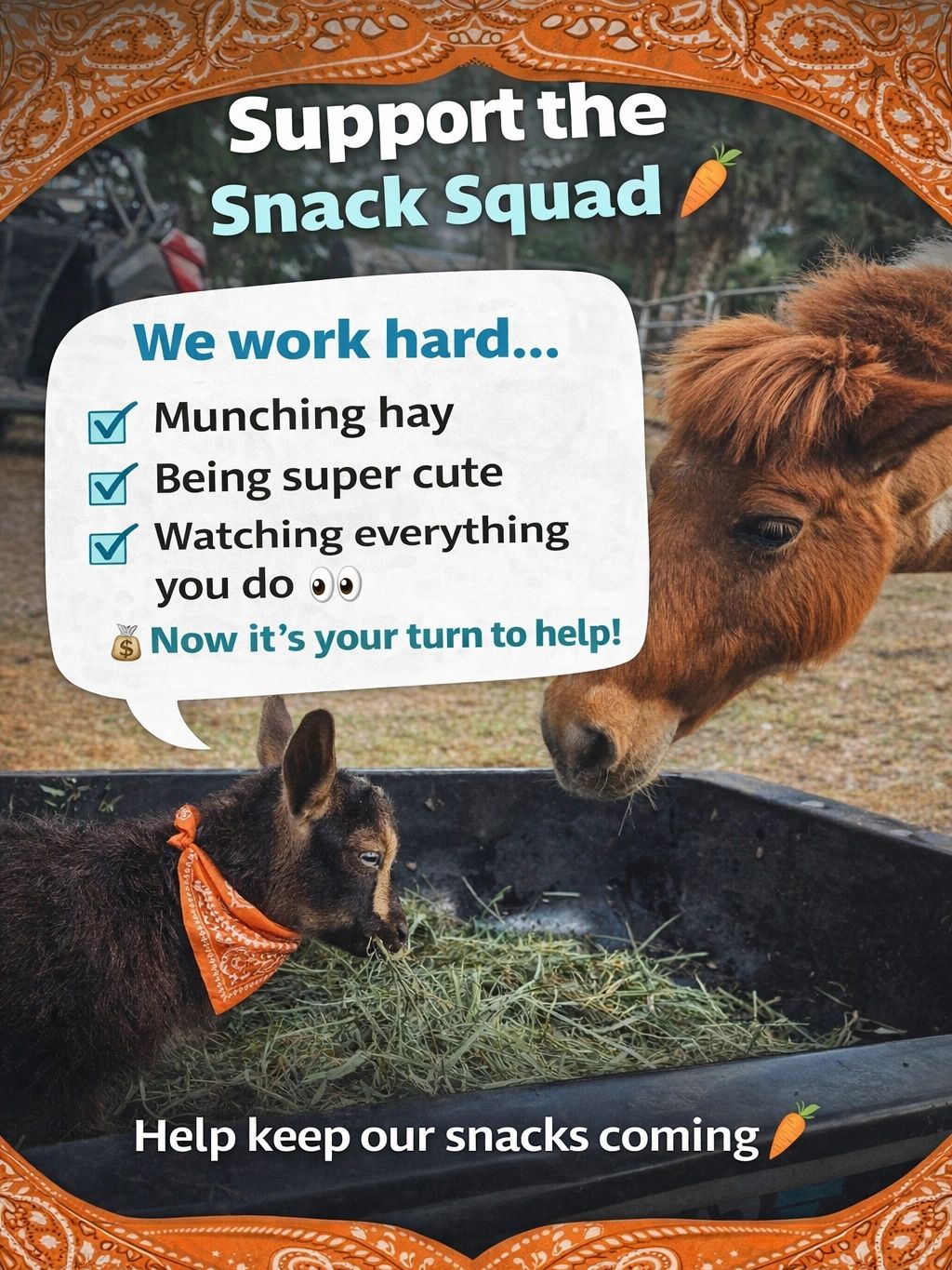 If you enjoyed your visit to Sunset Ranch and want to treat one of your farm friends to a treat, we welcome and very much appreciate contributions of any amount.