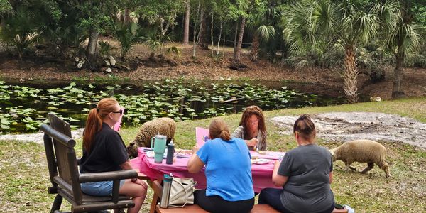 A little more than your everyday goat yoga. SRJ offers 'Goat Yoga Events'; events include a Goat Yoga Class followed by time for your group to spend time together under our mossy green canopy of Florida native trees. Goat Yoga Events are an excellent way to celebrate milestone birthdays, bridal showers or just provide a great excuse to gather a group of family and friends together to celebrate or fundraise. *These are flat fee events with a max on attendees. Outside food and drinks are welcome.